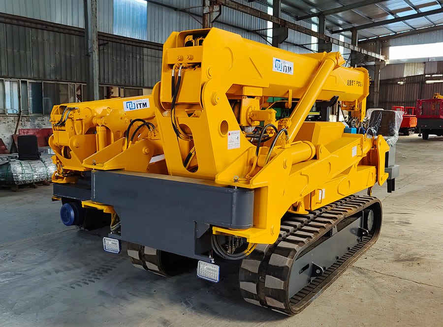 Las grúas araña están equipadas con un chasis sobre orugas o estabilizadores que brindan estabilidad y permiten un posicionamiento preciso. Las orugas les permiten atravesar terrenos irregulares, escaleras e incluso subir pendientes, lo que garantiza un movimiento suave y acceso a lugares desafiantes. Esta alta maniobrabilidad hace que las grúas araña sean adecuadas para diversos entornos, incluidas áreas urbanas y sitios de construcción complejos.